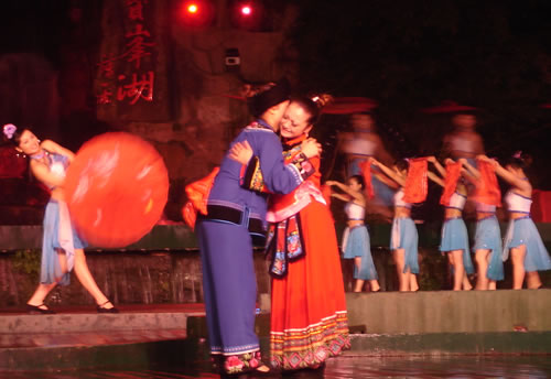 姑娘出嫁,為女人一生中最大的喜事,本應(yīng)充滿幸福、歡樂的氣氛。然而,舊時湘西、湘南、鄂西、川西(成都等地)、黔東(銅仁、凱里一帶)諸地,卻流行著一種與之完全相反情調(diào)的古老婚俗——“哭嫁”。也就是在姑娘“出閣”之前,不但新娘本人哭得很傷心,像淚人一般;而且,新娘的母親、姐妹以及姑媽、姨媽、舅媽及其他交往較多的女友,都要陪著新娘哭。湘西土家族哭嫁的風俗尤為普遍、濃厚,不但哭嫁的時間較長(少則十來天,多達個把月),而且哭嫁歌也保存得古樸、完整。 姑娘出嫁為什么要哭?哪有那么多的東西可哭?這是一種蘊含甚為豐厚的人生禮俗,也是一種饒有興趣的婚俗事象。 俗話悅:“人不傷心不落淚。”姑娘出嫁之所以要哭,是因為在舊式婚姻制度下,女孩(尤其是勞苦大眾家庭的女孩)總是作為犧牲品“拋”(賣)給夫家的,她們的身心受到極大傷害。因此,湘西等地的女孩在出嫁之前要哭泣,要呼號,哭嫁歌就是感情發(fā)泄的最好表現(xiàn)方式。 哭嫁的源起 哭嫁的風俗,不知道起源于什么時候。戰(zhàn)國時期,趙國的公主嫁到燕國去作王后,她的母親趙太后在臨別時"持其踵,為之泣,祝曰,必勿使返。"大約就是后來長盛不衰的哭嫁風俗的濫觴了。 這種風俗,直至清末還盛行于四川農(nóng)村中,隨地區(qū)變化而大同小異。解放前,聽老人們說,早些時候,沒有嫁而不哭的人家。如果出現(xiàn)嫁而不哭的姑娘,也會被鄰里看作沒有教養(yǎng)的人,傳為笑柄;相傳有出嫁姑娘不哭而遭母親責打的事,這位母親當然算得上是入流導演了。 舊時宣講故事中,有花轎臨門,父親強令哭《迎風罵媒歌》的情節(jié),可知哭嫁是有歌詞的,帶有表演性質(zhì),原是用來渲染氣氛,以悲襯喜;不過,因為婚姻是包辦的,真哭真罵的也不會少。 抗日戰(zhàn)爭后期,風氣較開,哭嫁之風已不盛行,而老人們卻還在津津樂道,哭的方式是,從婚期前一個月的首日起,入黃昏,姑娘訴哭約一個小時,其聲嗚嗚。十天以后,她的母親加入"陪哭";又十天以后,她的祖母加入陪哭。這家沒有諸姑姊妹,人們說,如果有的話,也應(yīng)當加入陪哭行列的。 哭嫁在川西叫"坐堂"。清代吉道人《味蔗軒隨筆·坐堂詞》云:"婚姻之禮,各省風俗不同。然酌禮準情,各省亦大同小異。凡男家娶婦先賦之詩,謂之'催妝';女家親串頌女之詞,謂之'坐堂'。坐堂者,女當喜期將近之先數(shù)夕,其諸姑伯姊,置酒為女祖餞,各述吉祥之詞,以為頌美,女則申己之意以答。女左右更有少女,則隨而嫻習者也。其詞要多鄙俚,然有音韻凄清,風格遒勁,如古歌古謠者。羅江明府蔡,微服巡查鄉(xiāng)里,一日行至某處,值有女子歸,諸娣姒咸以諛詞頌女,女申意以答。忽風吹句入耳,詞曰:'鳳凰落在桌子上,哪個女兒肯離娘'。一字一轉(zhuǎn),音韻凄其,誰謂天籟之鳴,不在愚夫愚婦耶!"云云。吉道人姓周名際唐,成都人。吉道人記得明明白白,可惜他只記了一句哭嫁詞,難窺全貌。好在舊時坊間叢刻中有《訓女哭嫁》一種,可見一斑。這本小書的目錄有《閨聲哭》、《娘訓女》、《嫂哭妹》、《哭爹媽》、《哭哥嫂》、《花轎到屋哭》、《哭叔爺》、《哭兄弟》、《哭外公外婆》、《哭舅爺》、《拜香火哭》等等,編次有點凌亂,似乎隨手所記,未經(jīng)文人之手。遙想《詩》十五國風未刪之時,大約也不過如此吧! 閨聲哭 娘聽后園鳥雀驚,要聽房中女兒聲。 我娘當門苦葛藤,手攀苦葛訴苦情。 我娘苦情苦過了,女兒苦情才起根。 ............ 桔子開花葉子青,陽雀開聲我開聲。 新打銅盆才裝水,新打剪刀兩面青。 娘不開口我開口,娘不開聲我開聲。 當門一根木蓮樹,目連樹上掛卷經(jīng)。 一本經(jīng)書背完了,未見我娘來開聲。 虧了我娘睡得穩(wěn),爹媽眼淚貴如金。 哭爹媽 月亮彎彎照華堂,女兒開言叫爹娘。 父母養(yǎng)兒空指望,如似南柯夢一場。 一尺五寸把兒養(yǎng),移干就濕苦非常。 ............ 勞心費力成虛恍,枉自爹娘苦一場。 哭兄弟 黑漆茶盤烏木頭,姐姐離娘弟不留。 留到姐姐吃你飯,留到姐姐穿你衣。 兄弟當家掙家忙,嫁了姐姐買地方。 上頭買齊潼川府,下頭買齊遂寧鄉(xiāng)。 ............ 這個本子所記是川北的歌詞,以前所見的是川南,吉道人所記的是川西,川東,大約也不會大異的。遺憾的是,該書所記哭嫁詞雖有"只怨媒人莫良心"等語,卻沒有列出"罵媒專目,大約是怕媒人太難堪了吧! 其實,罵媒是哭嫁中必不可少的節(jié)目,也是最具反抗色彩的哭嫁歌詞。舊社會,婦女無婚姻自由可言,由于"三從四德"的束縛,平時對于自己的終身大事幾乎不能置一詞,全由媒人和父母擺布;因此,這登花轎之前的"罵媒",便是難得的發(fā)泄機會。這早已反映在戲曲和民間說唱等藝術(shù)之中。 以前,川劇《柳蔭記》有《英臺罵媒》一折,英臺罵媒人,言詞激烈,聲色俱厲,充分表現(xiàn)了祝英臺剛烈的性格和反封建精神。她罵道:"提媒婆,更恨她,胡言亂語嘴喳喳......唯愿你,房屋遭火化,田園水推沙。"但這場戲現(xiàn)在卻被刪掉了,五六十年代還有的,全國第一屆戲曲會演的川劇《柳蔭記》也有這一折,是陳書舫演的祝英臺,得了一等獎,F(xiàn)在城里人大約以為媒婆不必罵了,但偏遠地區(qū),媒婆似乎還在肆虐。不過,據(jù)說,媒人從來不怕你罵,反倒怕你不罵;你不罵,他的"霉(媒)氣"反而脫不了。這也是風俗民情中的一種幽默吧! 在三峽民間,