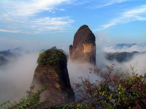 | 莨山,位于湖南省新寧縣境內(nèi)。南與桂林相連,北與張家界呼應(yīng),是國(guó)內(nèi)最為典型的丹霞地貌風(fēng)景區(qū),是國(guó)家重點(diǎn)風(fēng)景名勝區(qū),又是國(guó)家地質(zhì)公園,總面積108平方公里,轄紫霞峒、 扶夷江、駱駝峰、牛鼻寨、八角寨五大景區(qū),地質(zhì)結(jié)構(gòu)奇特,山、水、林、洞渾然一體。境內(nèi)有形神兼?zhèn)涞膶④娛⑽┟钗┬さ鸟橊劮、鬼斧神工?天下第一巷"、地造天設(shè)的鯨魚(yú)鬧海、氣勢(shì)磅礴堪稱(chēng)亞洲第一的天生橋、高聳入云而又十分逼真的辣椒峰,這便是嘆為觀止的莨山六絕,這是大自然對(duì)莨山的恩賜,每一絕都舉世無(wú)雙。莨山還生長(zhǎng)繁衍著銀杉、珙桐、華南虎、云豹、靈貓、大鯢等珍稀動(dòng)植物,也為莨山的天然景色增添了無(wú)限靈動(dòng)與生氣。這里出土有10萬(wàn)年前的獼猴頭骨化石,有4500年前的新石器文化遺址,有清化農(nóng)民起義的寨堡,有晚清重臣劉坤一、劉長(zhǎng)佑、江忠源的宗祠、墓葬,有異彩紛呈的民族風(fēng)情,有膾炙人口的華采詩(shī)賦,明代縣人陳永猷留下了"夫夷(新寧古稱(chēng))勝景天成就,攝杖歸來(lái)入夢(mèng)頻"的美譽(yù),著名詩(shī)人艾青留下了"桂林山水甲天下,莨山山水賽桂林"的喟嘆。
