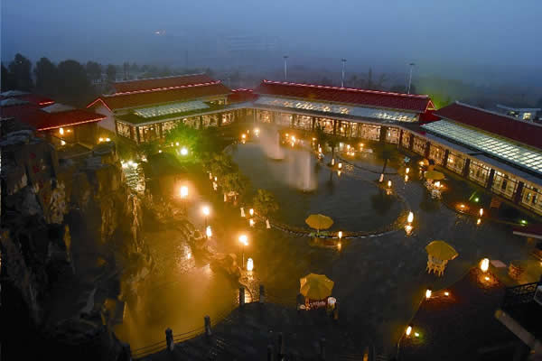 慈利縣江埡溫泉 最大的主溫泉池叫“同心泉”,形似一顆紅心,寓意同心同德,萬眾一心,眾志成誠。同心泉可供200人同時共浴,水溫38-41度,可躺可坐,沐浴其中,仰望藍(lán)天白云,遠(yuǎn)眺雄山奇峰,伴隨著典雅的鄉(xiāng)村音樂,周身便覺溫曖如春、愜意萬分。