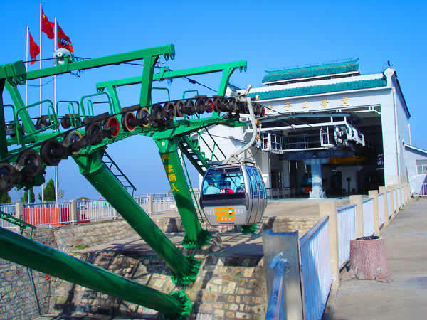 | 湖南武陵源索道有限公司成立于1995年12月7日,武陵源區(qū)人民政府和香港安達(dá)國際度假樂園(張家界)有限公司簽約,是由香港安達(dá)國際有限公司投資的外商獨(dú)資企業(yè)。1996年6月動(dòng)工興建天子山索道,1997年5月正式對(duì)外營運(yùn)。天子山索道是單線循環(huán)式脫掛抱索器客運(yùn)索道,全部設(shè)備自奧地利Doppelmayr公司進(jìn)口。設(shè)計(jì)水平線1960m,斜線長2084m,兩端站高差692m。配單線自動(dòng)循環(huán)車廂41個(gè),每車廂載6人,運(yùn)速5m/s,每小時(shí)單向運(yùn)量900人。索道動(dòng)力電,采用雙電源;配備有應(yīng)急備用柴油機(jī),用于停電或發(fā)生設(shè)備事故時(shí)緊急疏散游客。