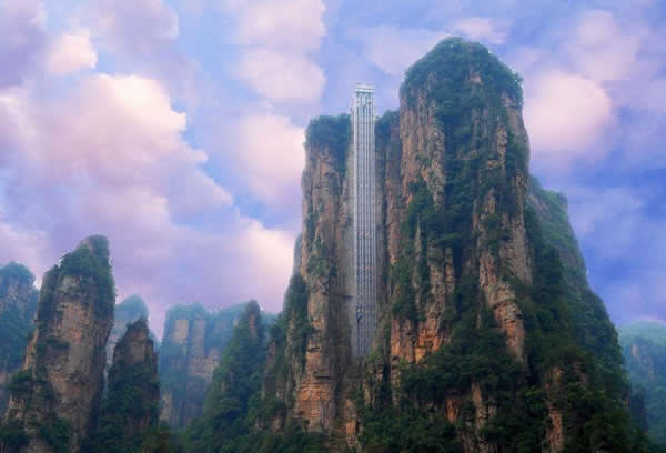 | 百龍?zhí)焯菀挥谑澜缱匀贿z產張家界武陵源風景名勝區(qū),1999年9月動工,2002年4月投入營運,電梯的主要設備由德國知名電梯公司研究生產,耗資人民幣1.8億元,被譽為“世界上最高、運行速度最快、載重量最大的電梯”,也因此被載入吉尼斯世界紀錄。