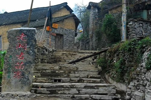 這里是一座石頭城,呈九宮八卦布局,設(shè)計(jì)精巧,而且攻防體系和排水體系都相當(dāng)完整,這里曾有著富足而輝煌的歷史。直到民國25年,烏龍山土匪1000多人攻打老洞苗寨12天12夜,燒掉老洞古建筑群2座,搶走銀光洋一萬余塊,銅元一萬多斤,銀錠300多斤,從此以后老洞苗寨沒落深山,步入貧窮而漸漸地不為人知。