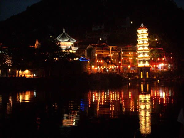 萬名塔夜景 為何要修筑這字紙爐,據說,乾隆五十年(1876年)古城擴建了筆架城以后,形似筆架,故名“筆架城”,有了筆架峰,為培植風水,便在沙灣黃土坎江邊修筑字紙爐寶塔一座,象一支筆,與筆架城相對應,意欲使鳳凰人文蔚起。