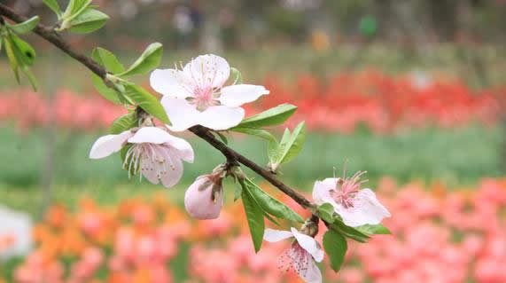 園內的桃花開得正艷,郁金香和桃花在一起的地方更是美上加美,成為游客拍攝最多的地方。由于游客眾多,經常有人踏入花田中拍照,這可忙壞了現(xiàn)成巡邏的工作人員,筆者在此呼吁大家愛花更護花,文明欣賞。