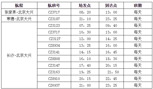 南航冬春換季后還全面優(yōu)化了各地往返北京大興的航線網(wǎng)絡(luò)。其中,張家界至北京大興航班為每天一班的朝發(fā)夕歸航班,去程CZ3717(張家界-大興)航班08:20張家界出港,回程CZ3164(大興-張家界)航班17:50北京大興起飛,時(shí)刻非常方便出行,張家界始發(fā)至大興單程僅450元起(不含稅)。常德每天往返北京大興1班;長(zhǎng)沙每天往返大興10班(2班為寬體機(jī)),均提供“精品航線”服務(wù)。此外,北京大興往返廣州、深圳、上海、長(zhǎng)沙、貴陽(yáng)、珠海、?、三亞、哈爾濱、大連、杭州、重慶、西安、烏魯木齊等全國(guó)主要城市均為早中晚全天候航班布局,方便旅客航空出行和中轉(zhuǎn)銜接。
