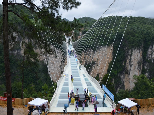 上 午:早餐后07:30至08:00 準時統(tǒng)一集合乘車赴“小九寨溝”之美譽的張家界大峽谷景區(qū)。(車程約60分鐘)【張家界大峽谷+玻璃橋B線】(門票已含),(已含首道門票,含游船費,游覽時間約3個小時),零距離接觸張家界“奇峰三千,秀水八百”的神奇瑰麗。觀天仙水瀑布、蝴蝶泉瀑布、竹仙泉、翠潭攬瀑;行于一線天、天梯棧道、石壁裂縫、石上森林;探怪謎洞、佛手遮天、爛船巖千古流傳的未解之謎;谷中猴群歡躍,百鳥爭鳴,湖水清澈、群山倒蘸 ,鴛鴦戲水、空氣清新、絕無僅有。形態(tài)各異的瀑布群,把生命之源傾瀉得淋漓盡致;隨海拔變化的植物帶,將四季更替演繹得如詩如歌;數(shù)條彩虹,百米梭板,千年風情,萬米長廊,把峽谷內(nèi)裝扮得如畫似錦。體驗世界最高最長首座斜拉式高山峽谷玻璃橋【云天渡】,漫步天上人間、輕吻藍天白云、帶上你的心靈從這頭走到那頭、走過青絲到白發(fā)!挑戰(zhàn)極限,戰(zhàn)勝自我(上橋游覽時間為20-30分鐘);(玻璃橋游覽注意事項:1、遇大風、暴雨等極端惡劣天氣,玻璃橋有可能關(guān)閉,關(guān)閉不能通行時不退任何費用;2、除錢包和帶有手機套的手機外,任何物品不得帶上橋;3、凡有心臟病、高血壓、恐高癥及醉酒和其他身體不適宜游覽的,請勿上橋;4、穿高跟鞋的游客不允許上橋;5、不得在橋上追逐、打鬧,拋物,不得倚靠橋上欄桿,以防身體傾斜,發(fā)生意外。6、游客在游覽過程中請聽從景區(qū)工作人員管理)!