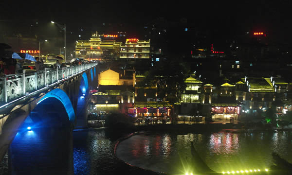 鳳凰古城是國(guó)家歷史文化名城,曾被新西蘭著名作家路易艾黎稱贊為中國(guó)最美麗的小城。這里與吉首的德夯苗寨,永順的猛洞河,貴州的梵凈山相毗鄰,是懷化、吉首、貴州銅仁三地之間的必經(jīng)之路。作為一座國(guó)家歷史文化名城,鳳凰的風(fēng)景將自然的、人文的特質(zhì)有機(jī)融合到一處,透視后的沉重感也許正是其吸引八方游人的魅力之精髓。這座曾被新西蘭作家路易艾黎稱作中國(guó)最美麗的小城之一的“鳳凰古城”建于清康熙時(shí),這顆“湘西明珠”是名副其實(shí)的“小”,小到城內(nèi)僅有一條像樣的東西大街,可它卻是一條綠色長(zhǎng)廊。